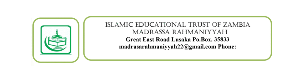 Name of Student *Date of birthApplication For School Grade *Application For Madrassa Grade *Last school or Madrassa attended *Father’s Name *Father’s NRC *Mother’s Name *Mother’s NRC *Guardian’s Name *Guardian’s NRC *Residential AddressPhone NoOther Phone No.Religion *MuslimNon-MuslimProvince *District *Submit Note: all parents are requested to please come with all original documents For more information, please contact us on+260 977113078